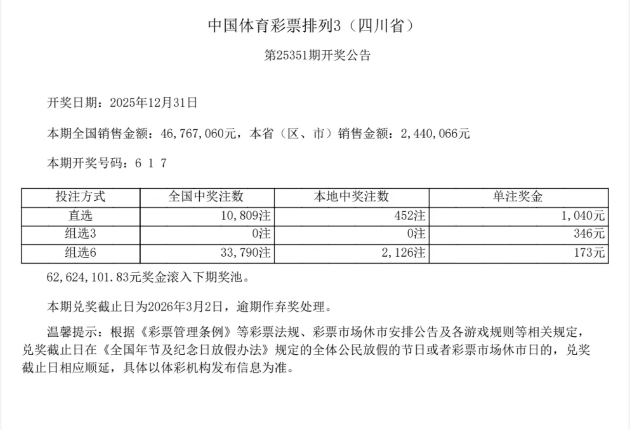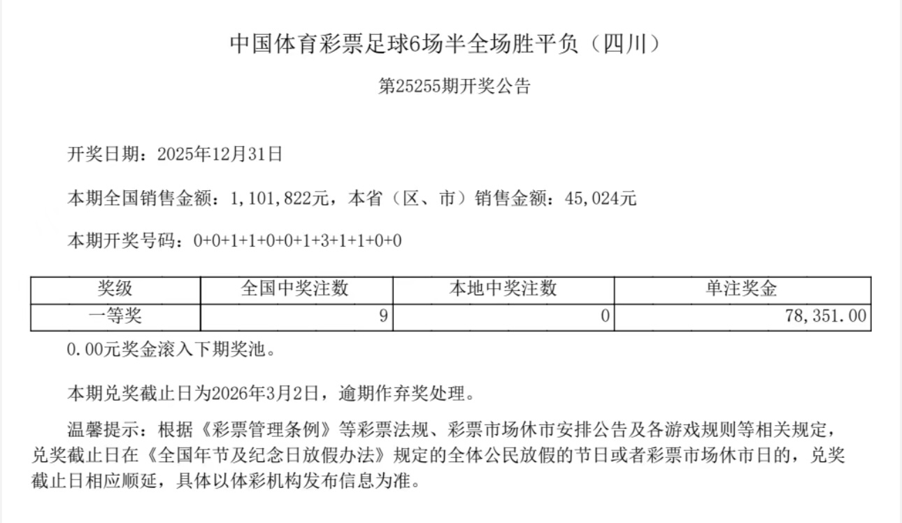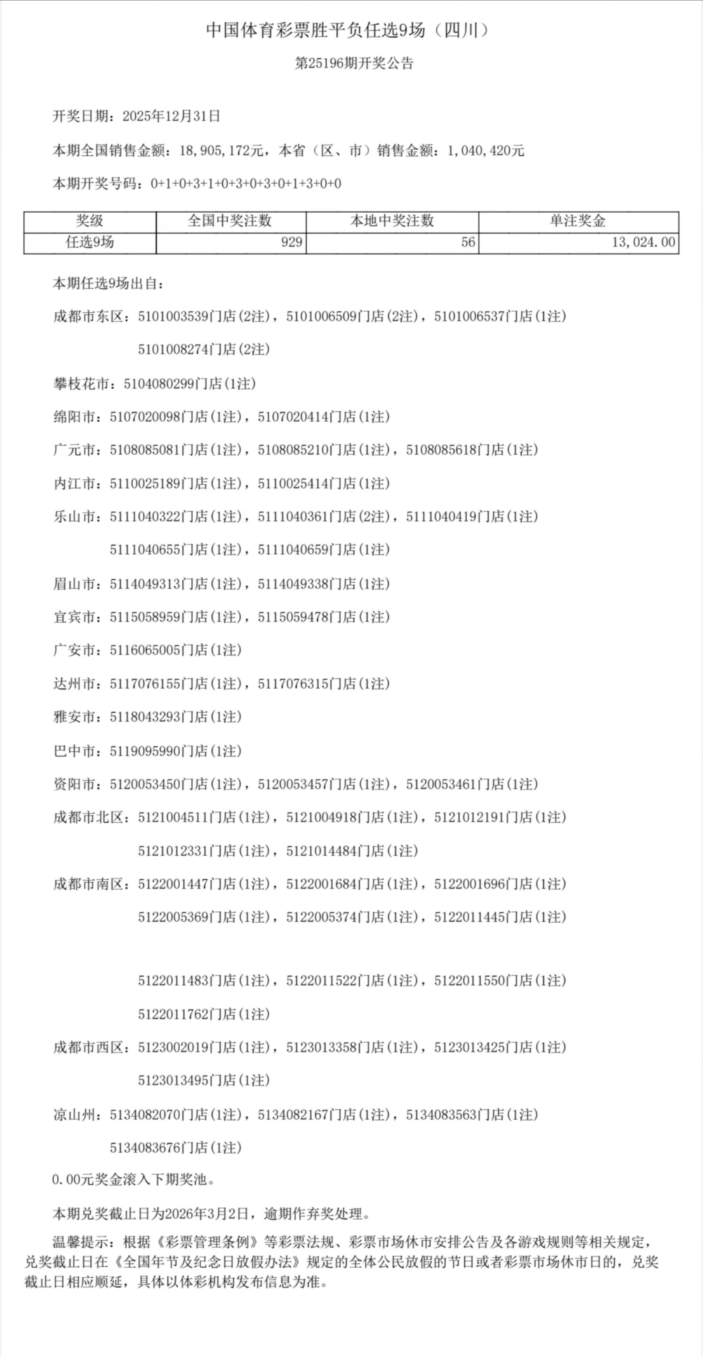 最安全靠谱的配资公司 中国体育彩票12月31日开奖结果