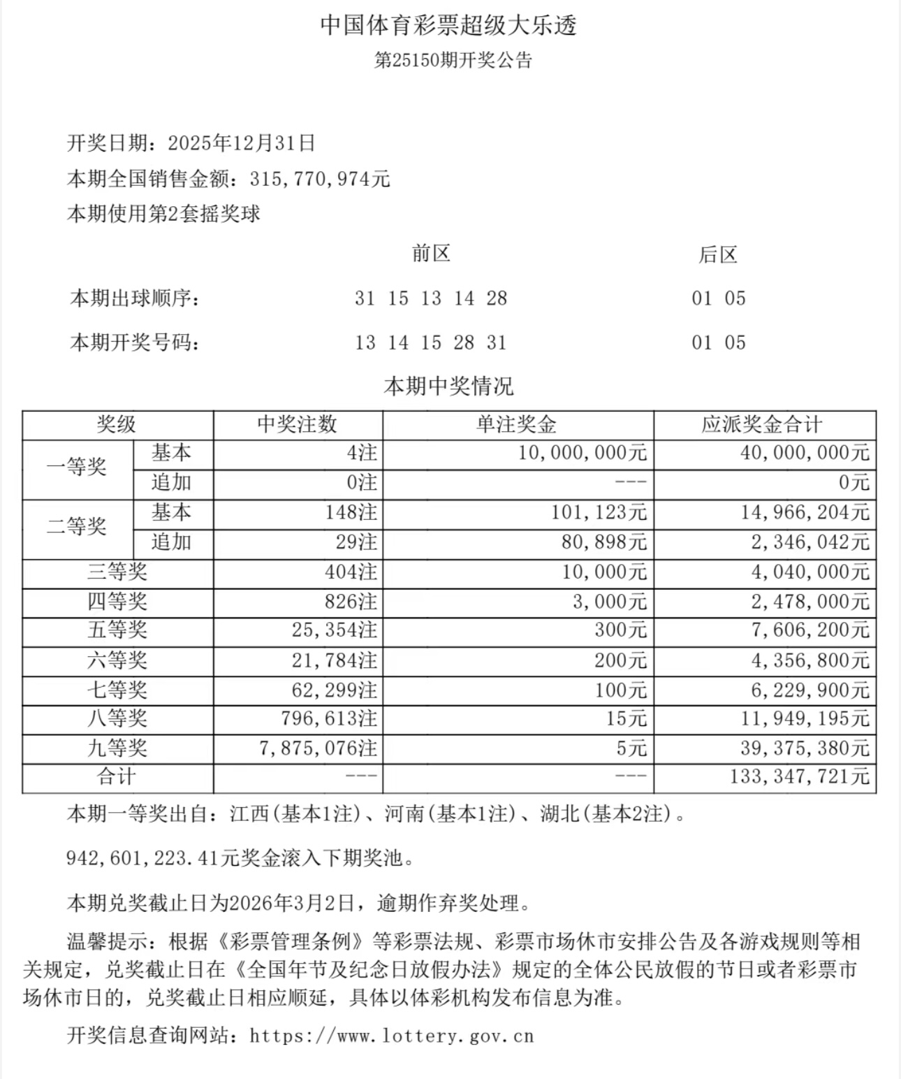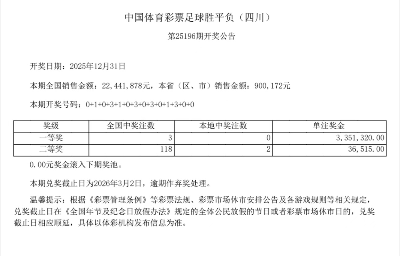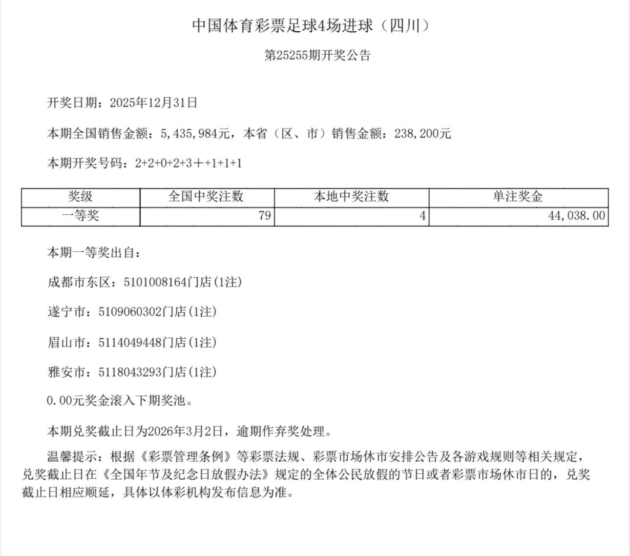 最安全靠谱的配资公司 中国体育彩票12月31日开奖结果